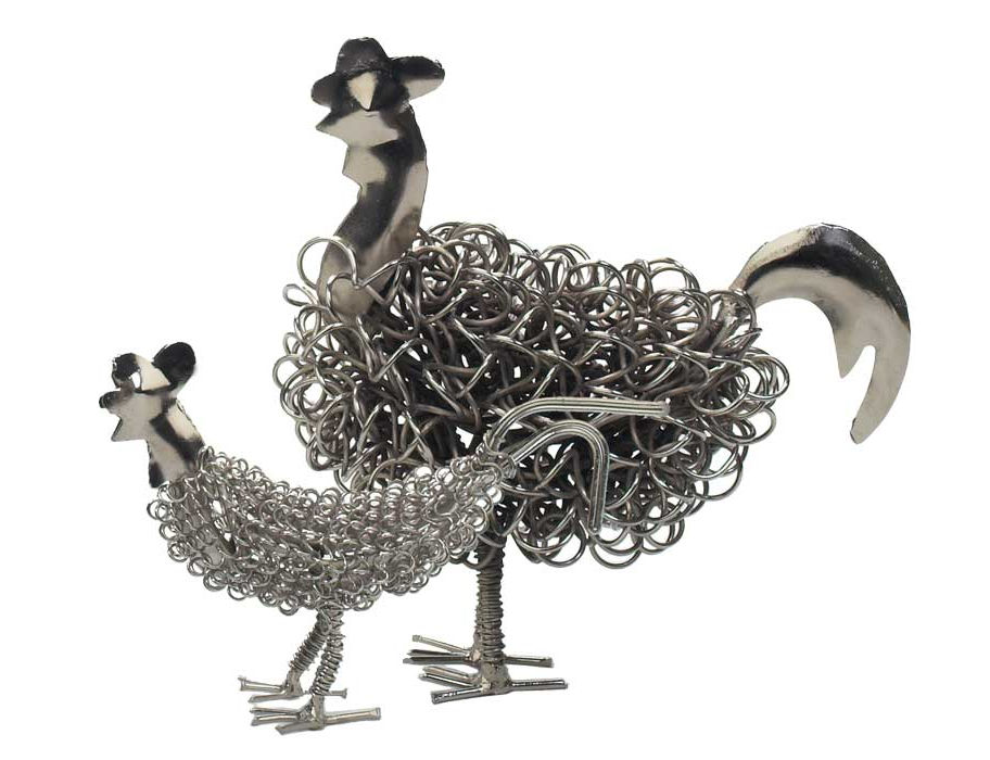 These playful creatures are made from stretched and coiled wire, cross-wrapped around a frame and then nickel-plated.